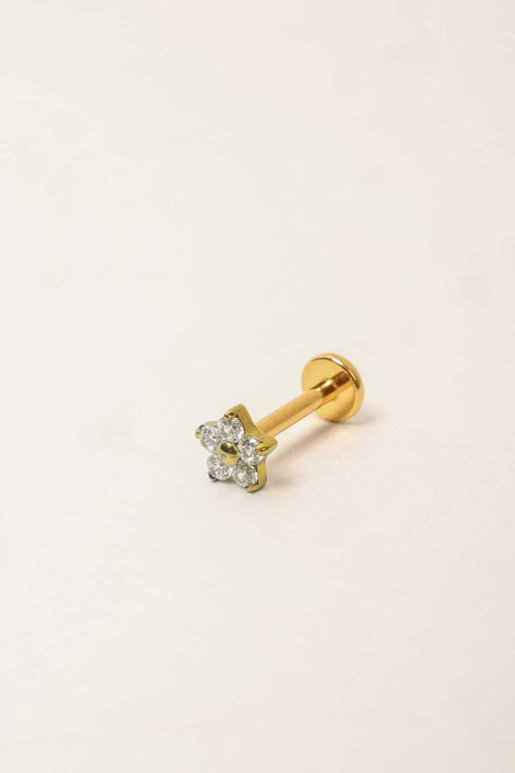 Descubra o charme da nossa mini flor cravejada com micro zircônias brilhantes, feita para quem busca delicadeza e sofisticação.