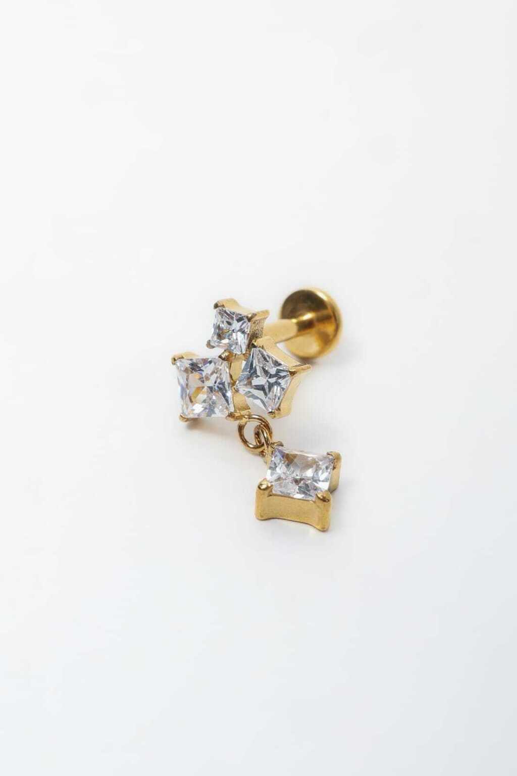 Descubra a delicadeza e o charme do labret com trio de carrés de zircônias que adiciona um balanço sutil e sofisticado ao seu visual, tornando-o mais divertido e refinado.